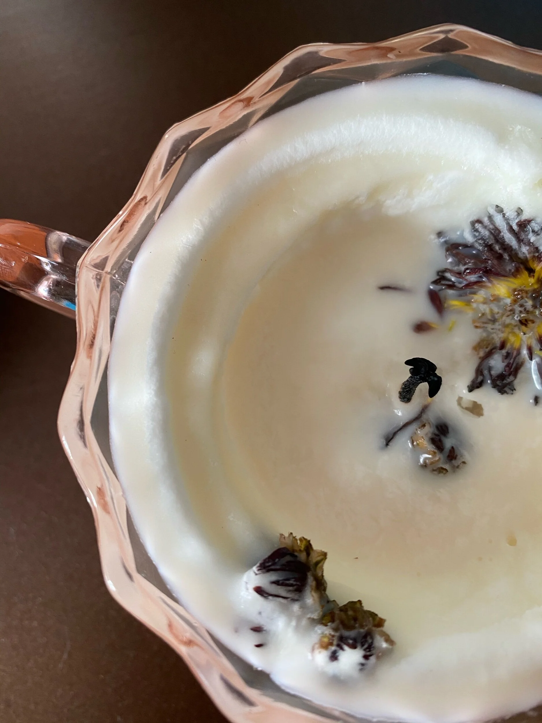 If you are burning a ritual candle with crystals and florals, you can remove any of the objects at any time, or leave them in the wax until your candle is gone. Be sure to keep decoration away from the wick to make sure the flame doesn’t get smothered out. Florals embedded in candles will not burn as long as there is still wax in your candle.