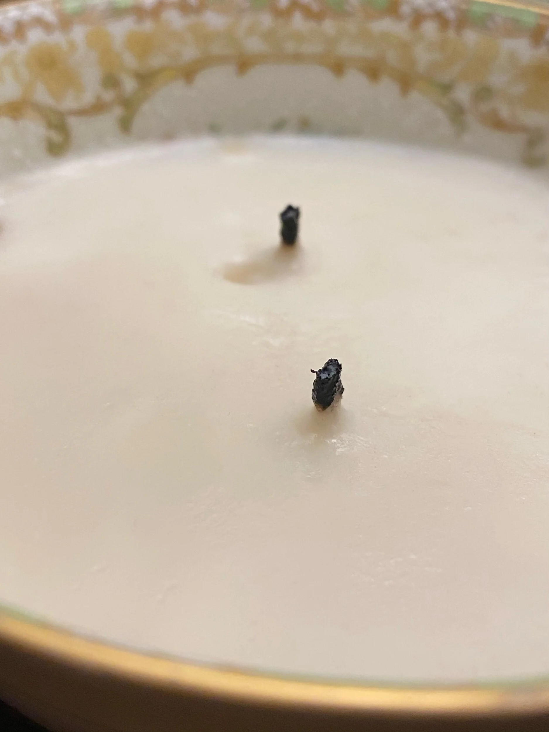 Trim your wick to 1/4” for the first burn and every burn after. Keep any of the wick trimmings out of the candle.