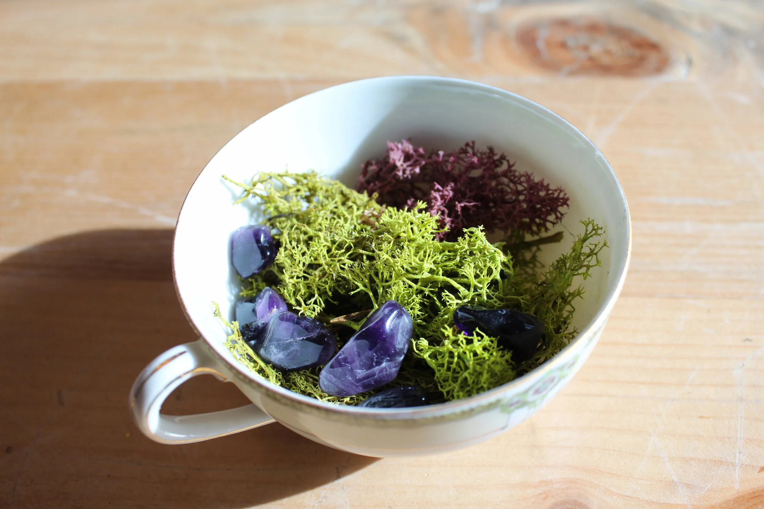 We pride ourselves on offering candles in containers that are reused, recycled, thrifted, or upcycled. But it doesn’t end there! Especially if you’re like me, and love the tea cups and vintage glass pieces. When your candle is done, clean it out to reuse!